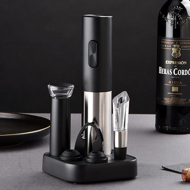 Electric Wine Opener Set, Includes Electric Wine Bottle Opener, Wine Pourer, Vacuum Wine Preserver, Foil Cutter & Base