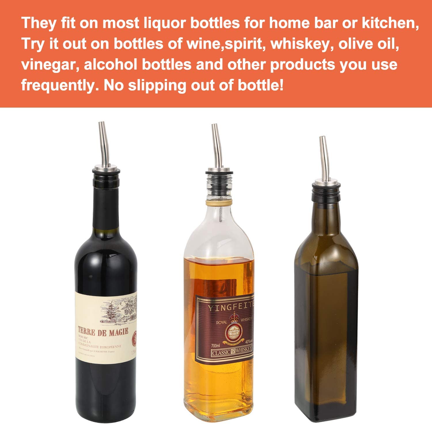Liquor Pourers, Stainless Steel bottle spout and Liquor Pourers Dust Caps Covers for Wine Liquor Vinegar Olive Oil Bottles