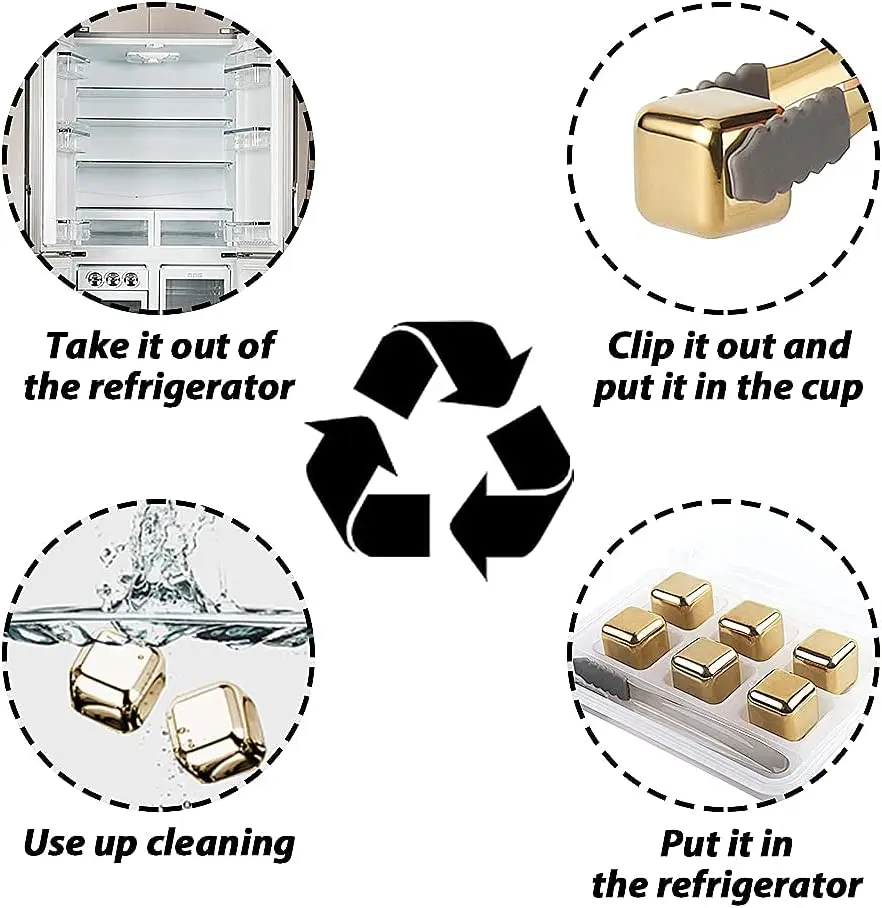 👉【Easy to Clean】 The Metal Ice Cube is durable, reusable, easy to clean. You can rinse with running water and air dry. They also wash up great in the dishwasher. After cleaning, you can place it to the refrigeratore again.