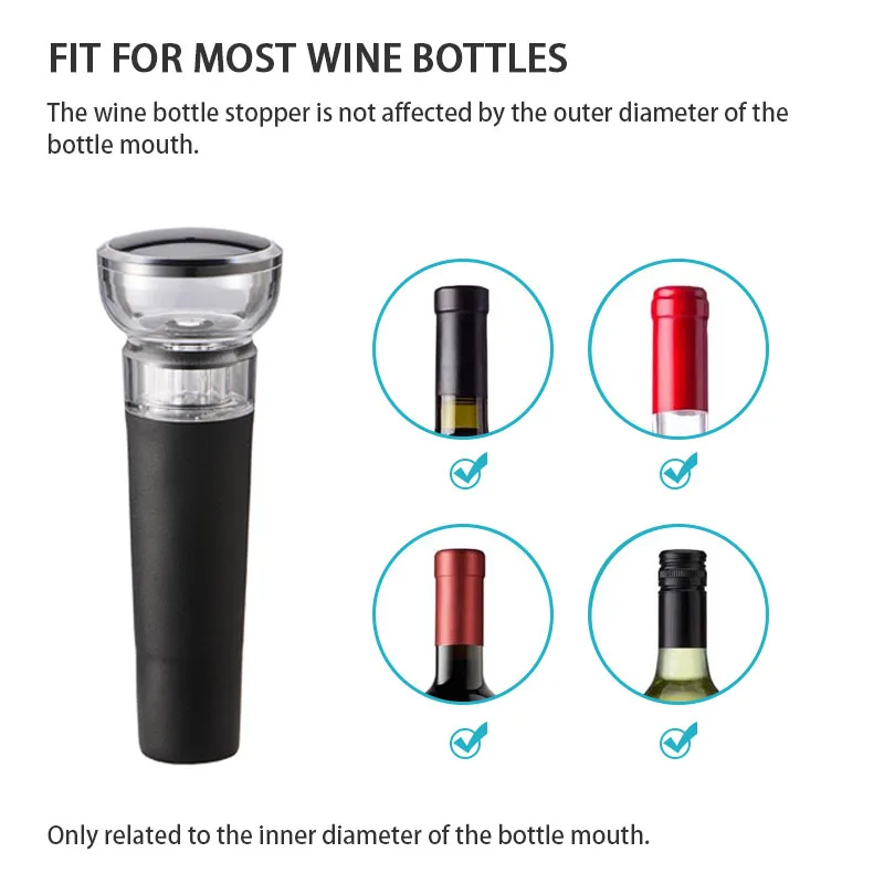 👉【Wine Vacuum Pump Stopper】 The stopper come with an in-built pump, which can remove air from the wine bottle to slow down the oxidation process, and prolong the freshing time. Just insert the stopper into the bottle, expel air by pumping the rod up and down until you feel some resistance, then you are done it.